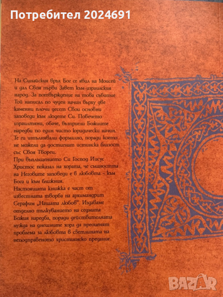 Настоящата книжка е част от известната творба на архимандрит Серафим “Нашата любов”. Издаваме отделно тълкуванието на седмата Божия наредба, поради действителната нужда на днешните хора да преоценят проблема за любовта в светлината на неподправеното християнско предание.