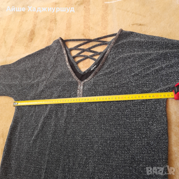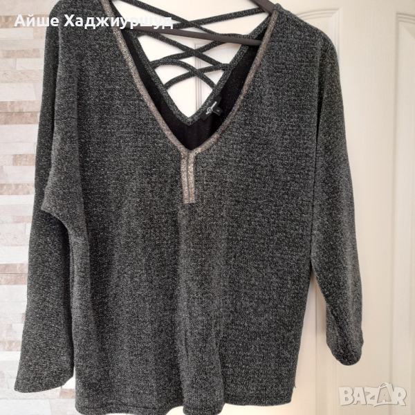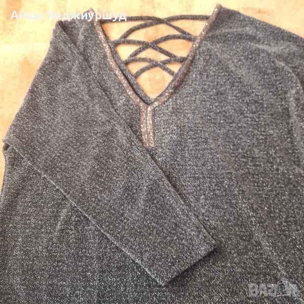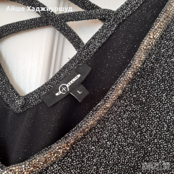 Елегантна дамска черна блуза с ламе,v образно деколте,р-р L.