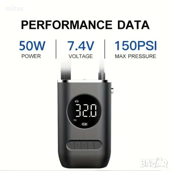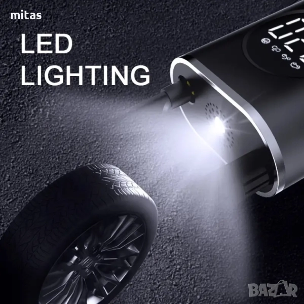 Преносим компресор за помпане на гуми Type-C, 150 PSI, 4000 mAh, LED дисплей