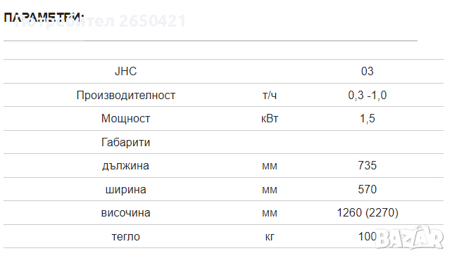 Компактната обелваща машина JHC е предназначена за обелване на зърнени култури, като спелта, лимец и овес.