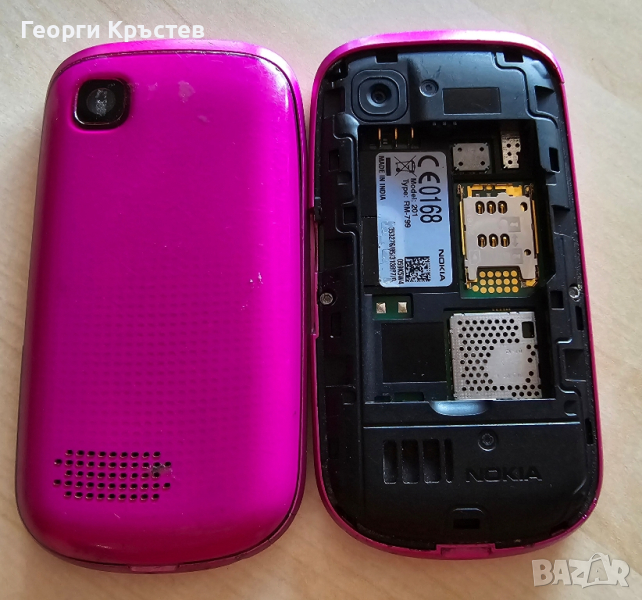 200 - телефона се включва и работи, тестван с А1, нямам друга за проба, зарежда си батерията, с 2 СИМ карти, но с панел на Nokia 201, втория слот за СИМ не се вижда, но той не работи, разбит е, а първия слот много трудно се намества картата, клавиатура, камера, слушалка, микрофон, всичко е ОК, има БГ меню, добър външен вид, долу в ляво лайсната е счупена, без батерия и зарядно.
