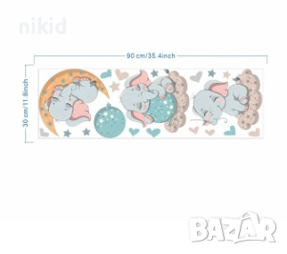 3 слон слончета самозалепващ стикер лепенка за стена детска бебешка стая → Обява 44896556