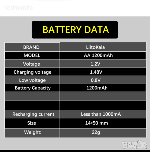 * **Ключови думи:** Liitokala, AA батерии, 1.2V, 1200mAh, Ni-MH, акумулаторни, презареждаеми, за температура, дистанционно, мишка, играчки.