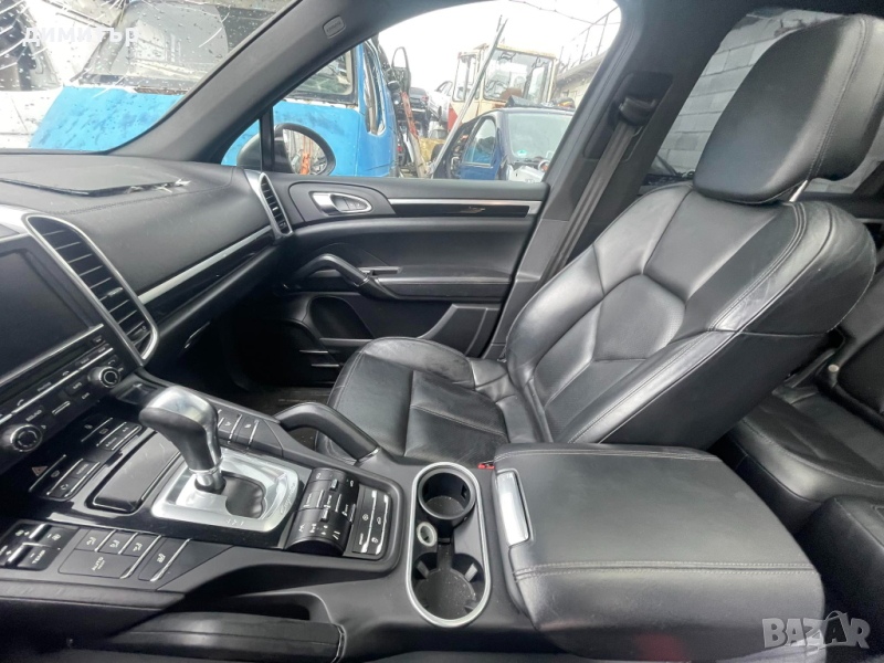 porsche cayenne 958 пълен комлект черен кожен салон с подгрев от ляв волан в състояние неразличимо от ново с минимални следи от употреба porche след 2011 година