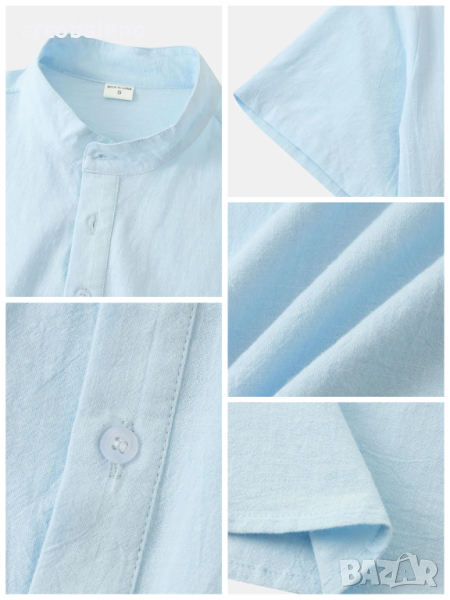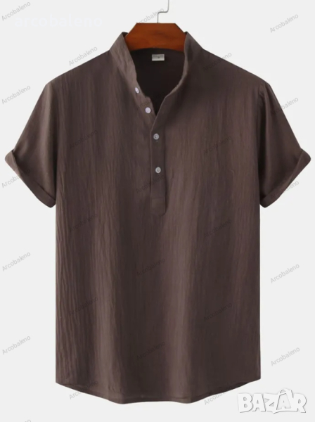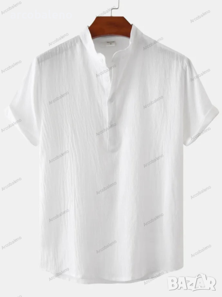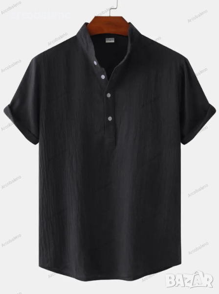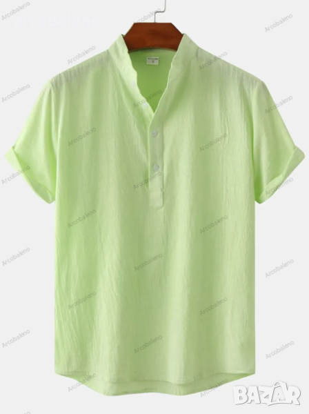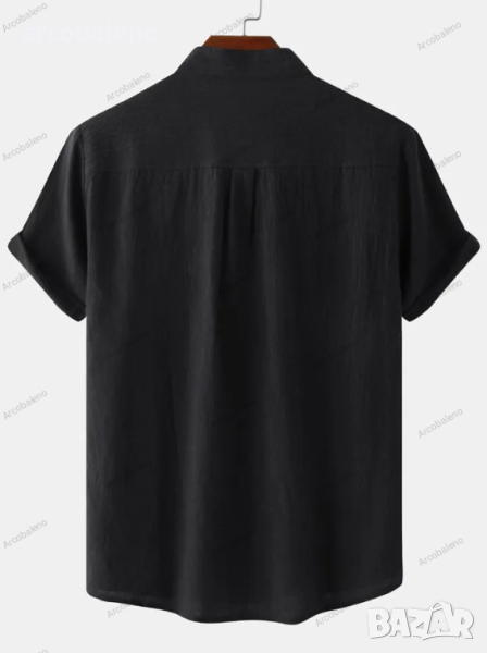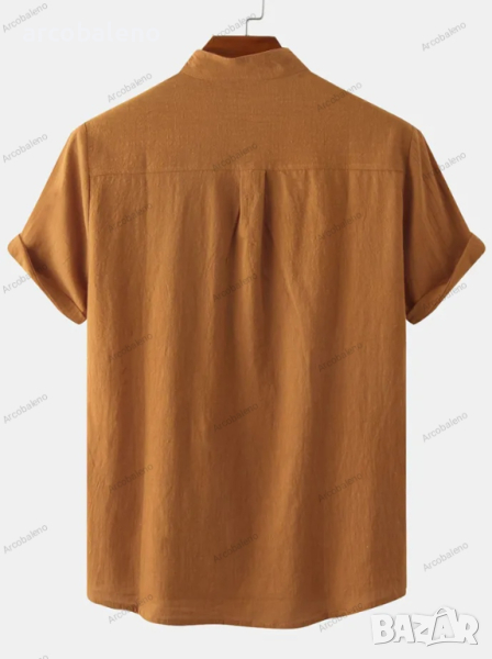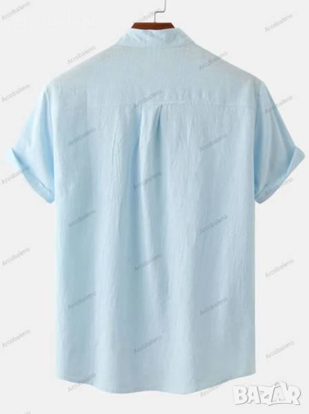 Мъжка памучна риза с яка и къс ръкав, 7цвята