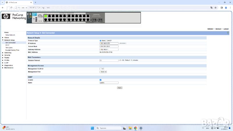 Управляем Суич 24 порта Managed Switch HP 1810G-24 J9450A