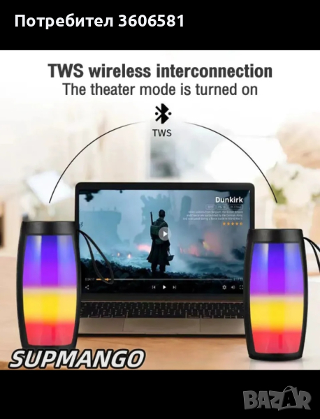 Мощен преносим звук във вашите ръце с красиви, ярки, разнообразни светлини мигащи в такта на музиката.