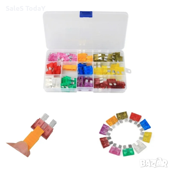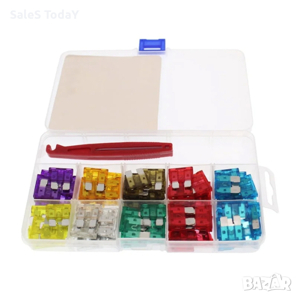 1851842 - PA465 Комплект 100бр. бушони.Работно напрежение: 12V / 24V.Бушоните са от тип: Mini FuseБушони с различен номинален ток:10 x 3A10 x 5A10 x 7.5A20 x 10A20 x 15A10 х 20А10 х 25А10 х 30А