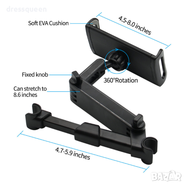 Разтегателна стойка за таблет или телефон за задната седалка