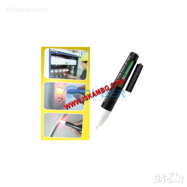 Професионален безконтактен тестер за установяване на напрежение в кабели, контакти и откриване на прекъснати жици. Електронният безконтактен фазомер измерва напрежение 90-1000 V/AC. С него се установява наличието на напрежение в кабели, контакти, фасунги за крушки и бушони.