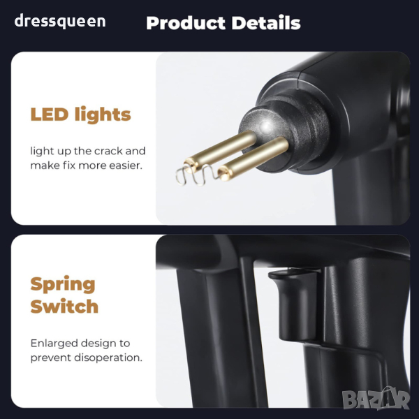 Термо телбод (поялник) за ремонт на пластмаса, известен още като горещ поялник "XC-70W" - позволява запояване на пластмаса, счупени крепежни елементи, скоби с различна форма, в различни позиции и това го прави универсален.