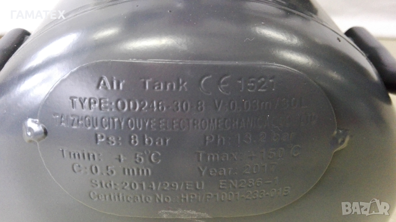 Танк за въздух от висококачествена стомана, сертифициран за високо налягане.