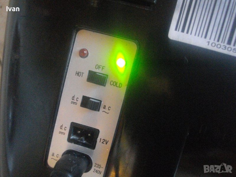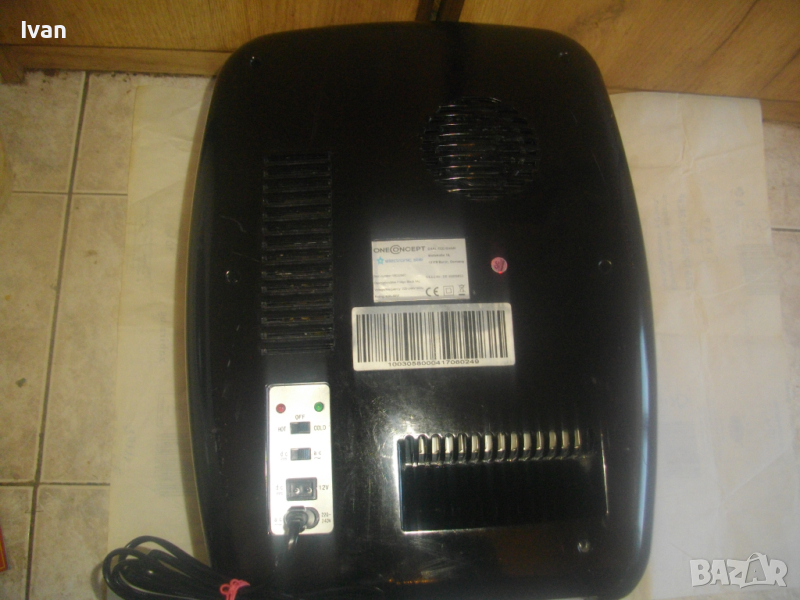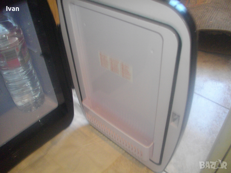 ОПИСАНИЕ на черен мини хладилник, работещ и на 220 волта и на 12 волта захранване - цена 199 лв. Почти нов, оригинален немски, маркирано производство Берлин, Германия. Вместимост на хладилника - 14 литра. Голям. Марка/модел/маркировки - Electronic Star - One Concert - Chal-Tec GmbH - Berlin-Germany - Mini Fridge Black 14 L. Отлично работно техническо състояние. Типа хладилници работят не с газов агент фреон или амоняк, а с елемент Пелтие за функциите си. Функции на уреда - студено охлаждане и топло затопляне. Захранване 2 извода - за кабел 12 волта за автомобил и за 220 волта към ел. мрежа. Наличен към хладилника 1 кабел - този за 220 волта. 2 светлиннни индикации - зелено /студено/ и червено /топло/. Характреристики на уреда/ 220-250 V 50 H - 12 V