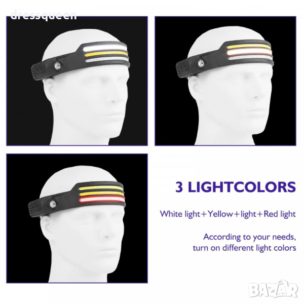 Челник за глава със сензор с жест на ръката с 3 COB ленти