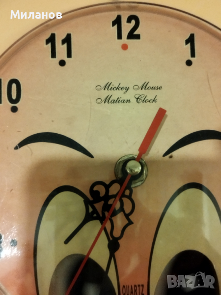 Стар стенен кварцов часовник, с включена 1 батерия АА.Работи, очите му мърдат.В отлично състояние, предполагам е от 80-90- те години.Височина без махалото-27,5 сантиметра