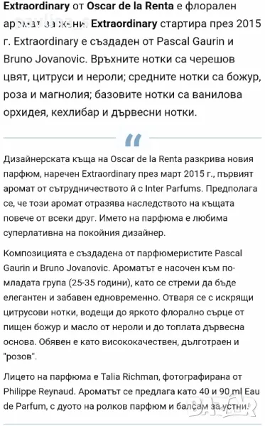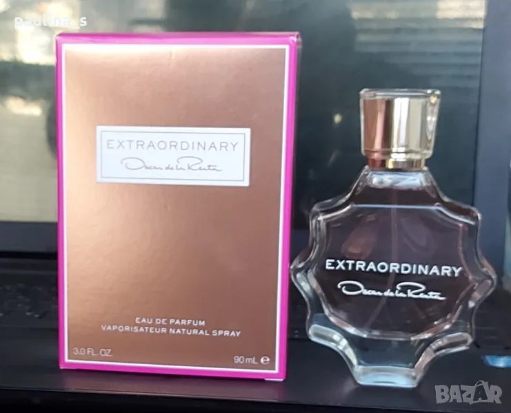 4️⃣. Дамски парфюм "Extraordinary" by Oscar de la Renta / 90ml EDP. Цената е крайна, без пазарлъци 35 евро. Пълна презентация, липсват няколко спрея за тест, бач код NK10. Сладък парфюм, но има характер, с голяма трайност и сияж, усещам го на дреха до изпиране, според Фрагрантика наподобява на Lady million, аз не бих казала.