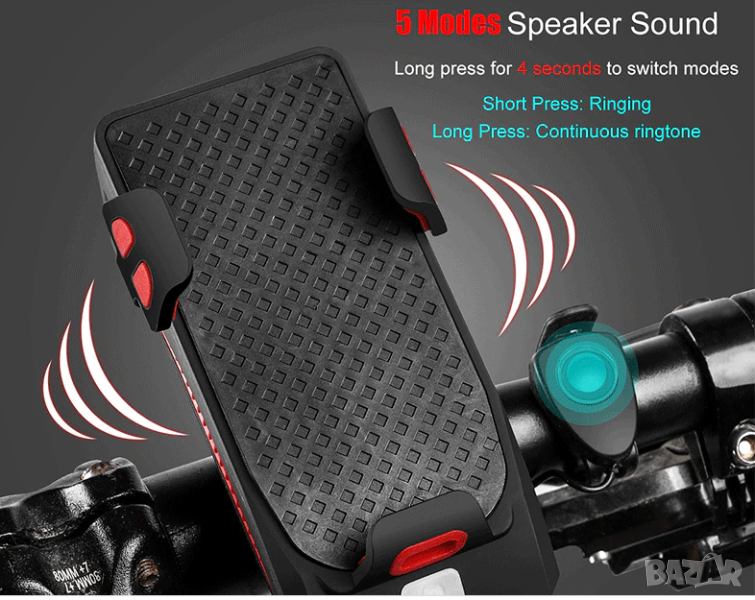 звънец за велосипед и акумулаторна батерия Power Bank.