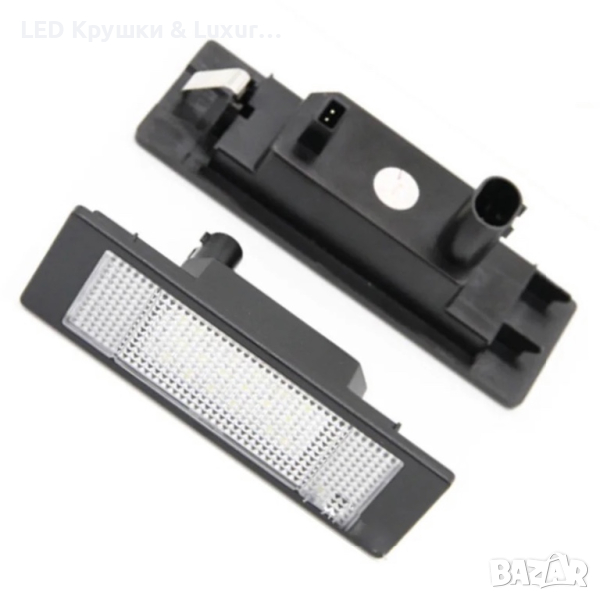 Светодиодни плафони за регистрационен номер с изключително високо качество на изработка и перфектно пасване на мястото на стандартните. Плафоните са оборудвани с ярко светещи диоди, които ще осветят перфектно вашия регистрационен номер. Основните предимства на LED плафоните са: ниската консумация и ярката светлина. Ако търсите промяна, изискан вид, силна светлина и надеждност, LED плафоните със сигурност ще покрият всяко едно от тези изисквания. След заменянето на стандартните ви плафони с LED, вие ще получите добре разпрашена, ярка светлина. Ако забравите включени LED плафоните, ниската им консумация няма да изтощи акумулатора.