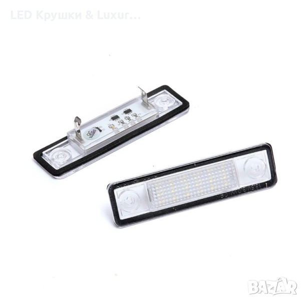 Светодиодни плафони за регистрационен номер с изключително високо качество на изработка и перфектно пасване на мястото на стандартните. Плафоните са оборудвани с ярко светещи диоди, които ще осветят перфектно вашия регистрационен номер. Основните предимства на LED плафоните са: ниската консумация и ярката светлина. Ако търсите промяна, изискан вид, силна светлина и надеждност, LED плафоните със сигурност ще покрият всяко едно от тези изисквания. След заменянето на стандартните ви плафони с LED, вие ще получите добре разпрашена, ярка светлина. Ако забравите включени LED плафоните, ниската им консумация няма да изтощи акумулатора.