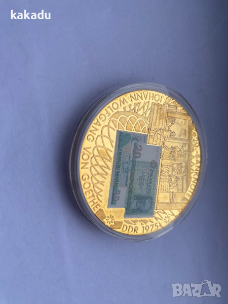 Рядък медал с банкнота - Гьоте, 1975 ГДР → Обява 44910728