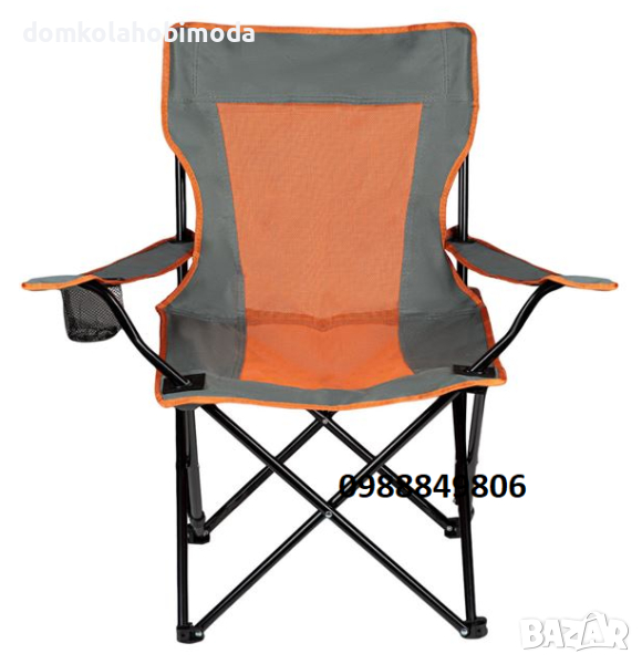 Сгъваем къмпинг стол сиво оранжев с калъф 52x56x75см