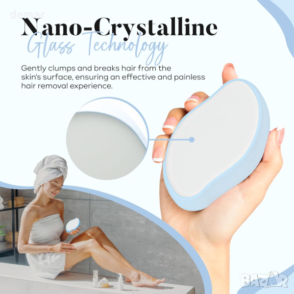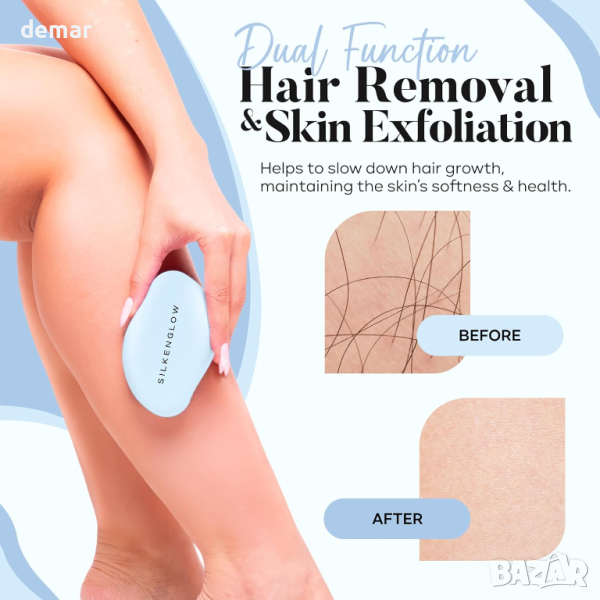 Premium Crystal Hair Remover на SilkenGlow предлага безболезнено и без химикали решение за премахване на косми, като гарантира, че няма дразнене или увреждане на кожата. Той не само премахва космите, но също така забавя растежа на космите и ексфолира мъртвата кожа за по-гладка и мека кожа. Този екологичен и дълготраен продукт не изисква резервни части или батерии, което го прави устойчив избор. Неговият компактен, лек дизайн е перфектен за пътуване, докато неговата простота и лекота на използване го правят достъпен за всеки. Лесен за пране и поддръжка, той обещава безпроблемно изживяване при поддържане на косата.