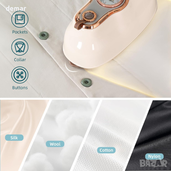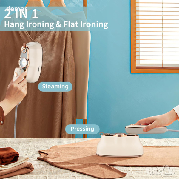 Takilar Преносима мини парна ютия 2 в 1, ръчен уред за изпаряване на дрехи, 1250 W мощност