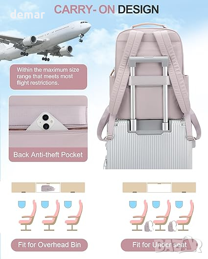 Тази дамска раница за лаптоп с размери 371441 CM (LWH) предлага просторно място за съхранение на 14-инчов лаптоп, портфейл, документи и други, което я прави идеална за различни поводи. Изработен от здрав, водоустойчив найлон с висококачествени ципове, той е проектиран за дълготрайност и лесно почистване. Раницата разполага с множество джобове, включително отделение за лаптоп и джоб против кражба, за организиран и лесен достъп до вашите вещи. Това е идеален подарък за пазаруване, пътуване до работното място или пътуване, подходящ за празненства като Коледа и Свети Валентин.