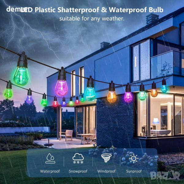 Plbriyu градински светлини RGB 15 метра,20 димируеми LED крушки водоустойчиви нечупливи,дистанционно