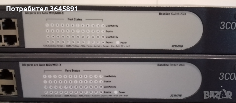 3COM BASELINE SWITCH 2024, 24X 10/100 BASE T (UNMANAGED) - 3C16471B → Обява 44915616