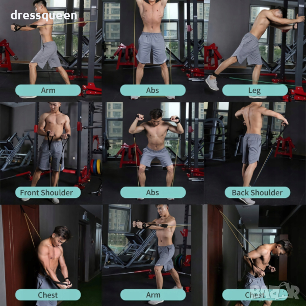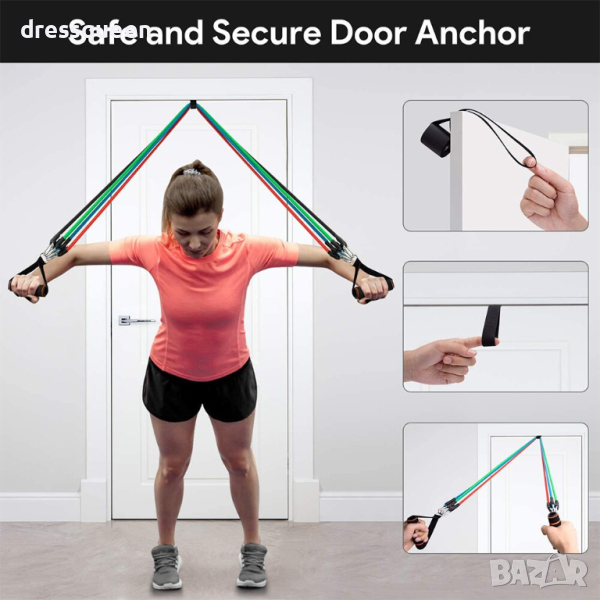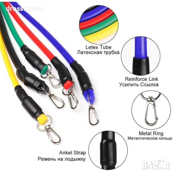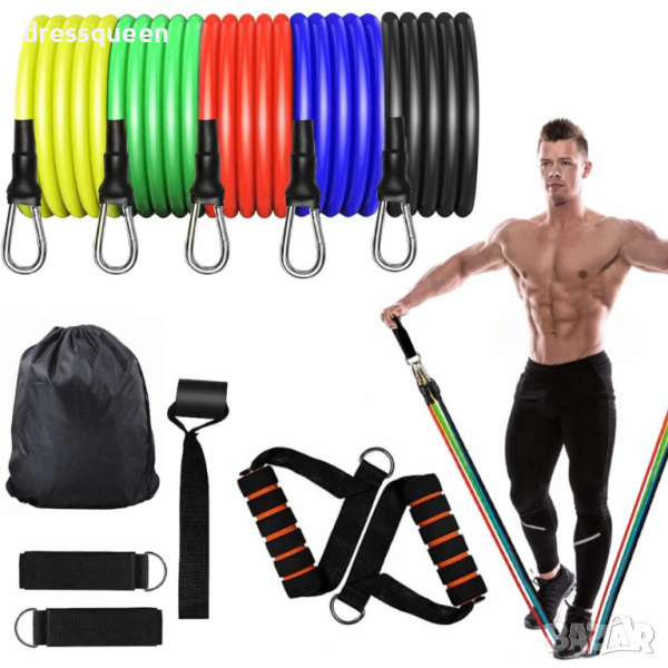 Комплектът, който Ви предлагаме е един чудесен начин за трениране на различните части по тялото. С ластиците от латекс, включени в него, Вие ще имате възможността да натоварвате различни мускулни групи. Използват се за тренировка и в домашни условия, защото са идеален помощник за всякакви видове упражнения и то за няколко минути. Латексовите ластици за тренировка са в различни цветове според натоварването, за което служат. Позволяват тренировка на различни части на тялото с около 100 упражнения и то докато сте в парка, във фитнеса или у дома.