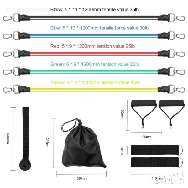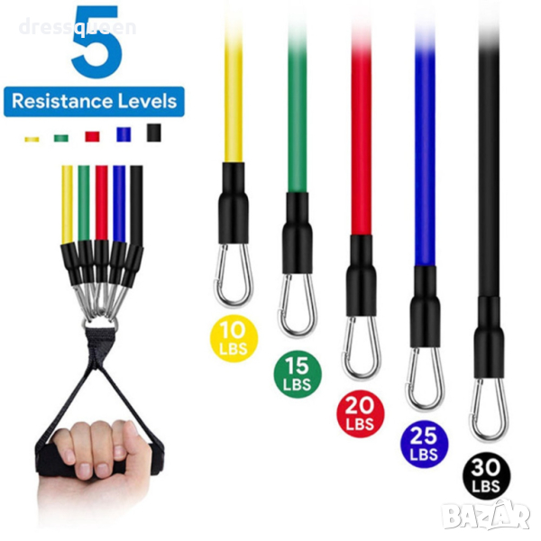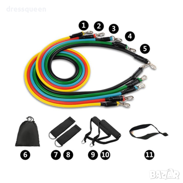 Комплект ластици за тренировка на различни мускулни групи от 11 части и натоварване до 45.3кг
