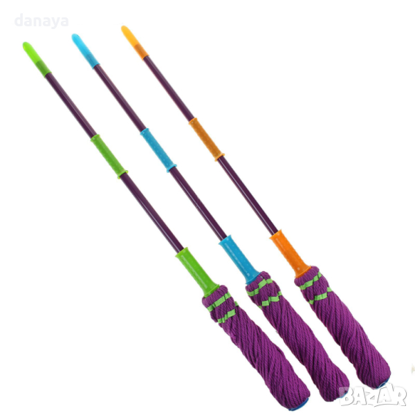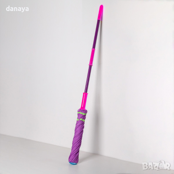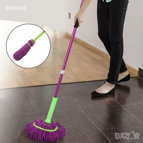 Микрофибърът абсорбира до три пъти повече вода от памука, което кара почистената повърхност да изсъхне много по-бързо. Удобен почистващ моп с дълга дръжка и въртяща се микрофибърна глава, лесен за използване, лесен за изцеждане.