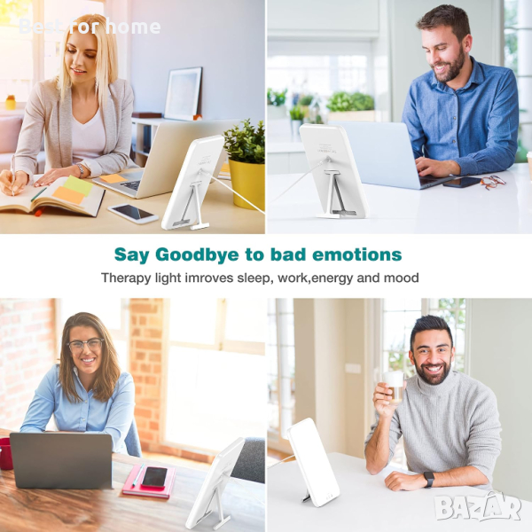 【Безопасна светлина без ултравиолетови лъчи】Освобождавайте естествена слънчева светлина без ултравиолетови лъчи с интензитет от 10 000 лукса, щадяща очите и кожата. Идеален за офис работници, работа на смени, безсъние и липса на излагане на слънце. Дава сигнали на тялото, за да се почувствате по-слънчеви, помага за енергията и настроението ви през целия ден.