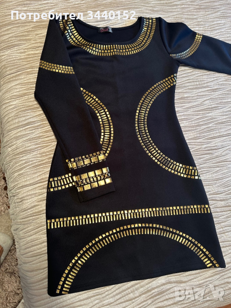 Къса черна рокля богато украсена със златни орнаменти. Произведена в U.K. Нова!!!