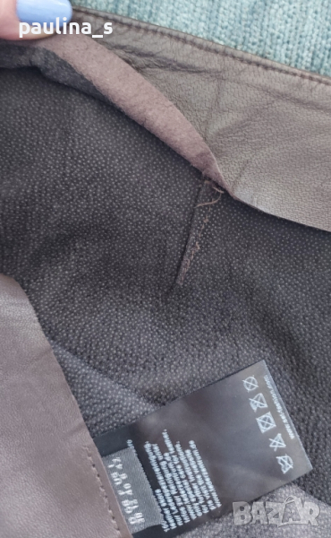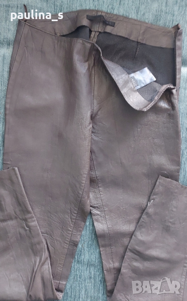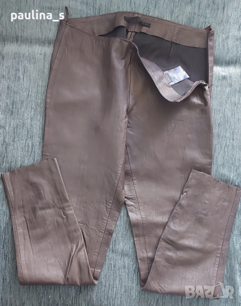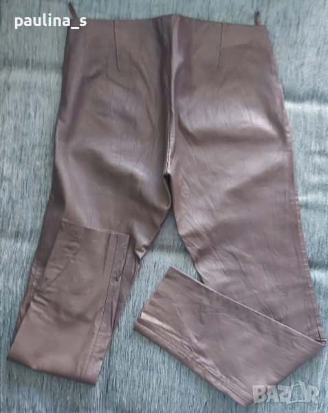 1️⃣. M / L - Естествена кожа! / Цената е крайна 49,99лв / 24,5евро. Много готин дамски панталон с нормална талия, прав крачол. Цветът е тъмно кафяв, в Армани стайл - намачкан ефект. Подлепен е до коляното, има еластичност и покрива няколко размера, посочени са. Без дефекти е.