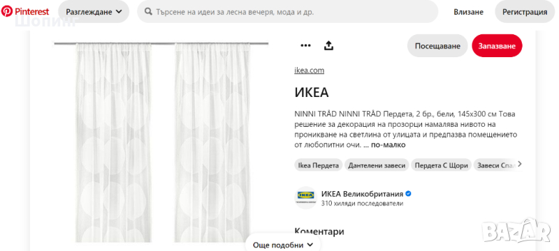 НОВО! Комплект завеси Икеа → Обява 44923244