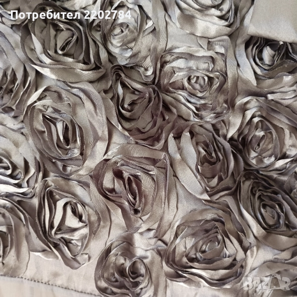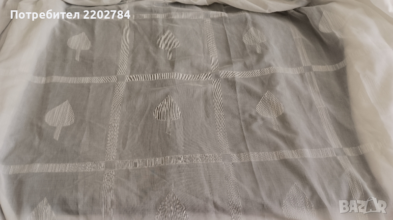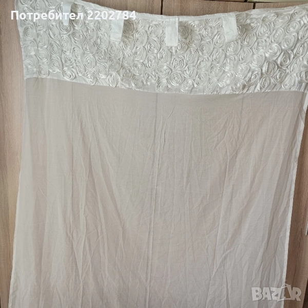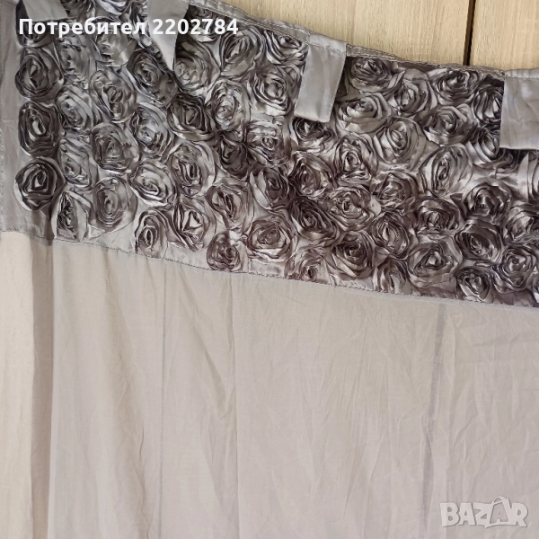 пердета в горната част с голям бордюр от сиви рози от сатен.Надолу пердето е прозрачно.Два броя.Без забележки.