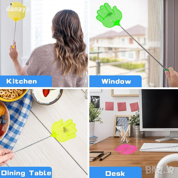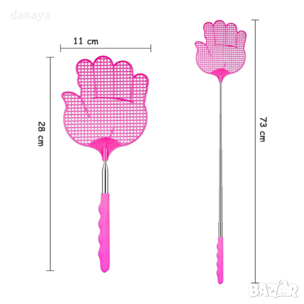 Палка за мухи и комари с форма на ръчичка, която има телескопична дръжка. Благодарение на удължаващата се дръжка достигате мухите и комарите и в най-отдалеченото място в стаята. Тази практична мухобойка има мека и удобна дръжка. Компактна тупалка за насекоми, която се разпъва и сгъва лесно до желаната дължина.