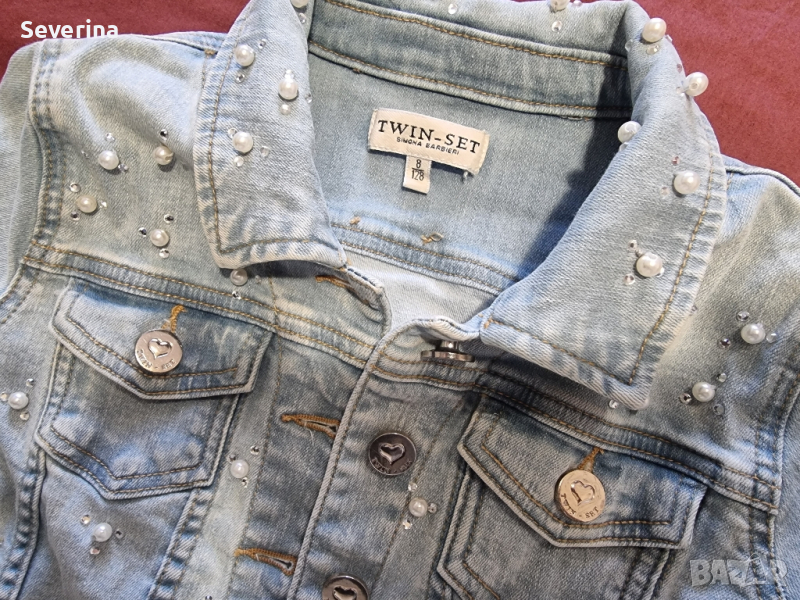 Невероятен дизайн, късо,дънкено яке на Twinset Simona Barbieri, модел pearls.