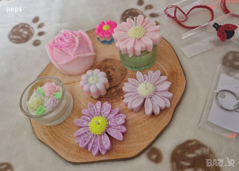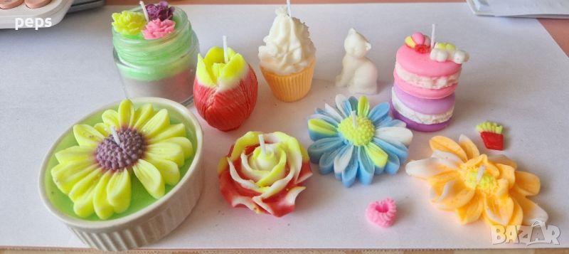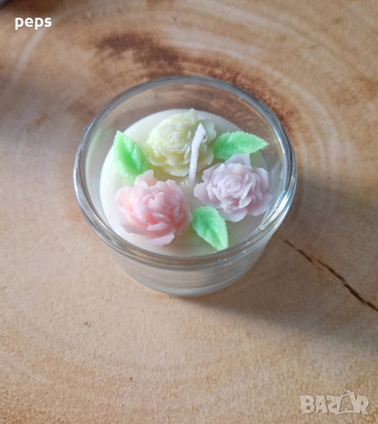 Ръчно изработени ароматезирани свещи цветове по ваш избор. Ценатата е от 3 до 10 лв