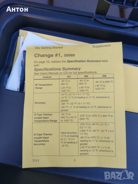 FLUKE 561 инфраред цифров безконтактен термометър професионален клас. Нов, с предпазно фолио на дисплея в оригинална пластмасова кутия за съхранение или транспортиране. Пълен комплект