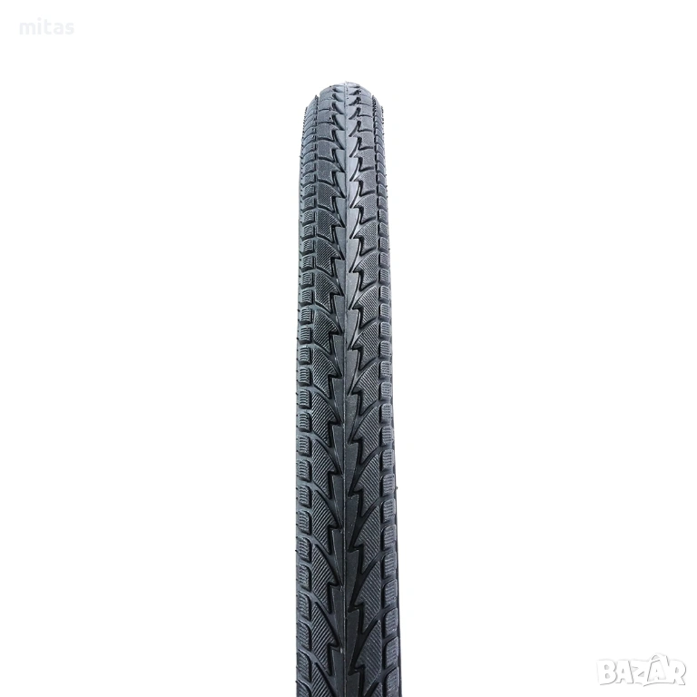 - Универсално сцепление: Въпреки класическия профил, гумата предлага достатъчно сцепление за преминаване през леки неравни терени, което я прави универсален вариант за различни маршрути.