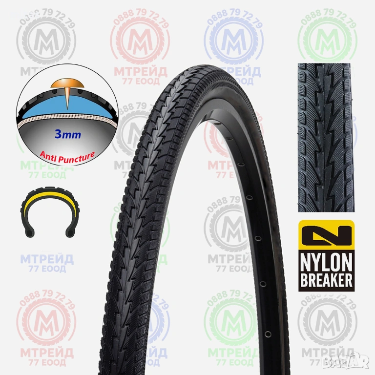 - Надеждна защита от пробиви: Вграденият 3 мм защитен слой ефективно предотвратява проникването на остри предмети като тръни, видии, пирони и други често срещани причинители на спуквания.