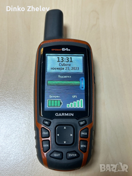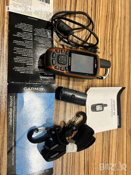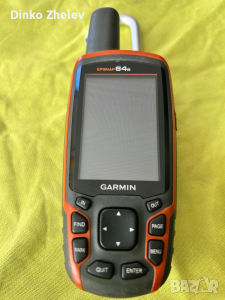 Garmin GPSmap 64s в добро състояние с нормални следи от употреба, проверен и ъпдейтван с меню на Български и инсталирана карта на България. В комплект туристическа карабина, две батерии АА, протектор за дисплея, карта памет и стойка за кормило.