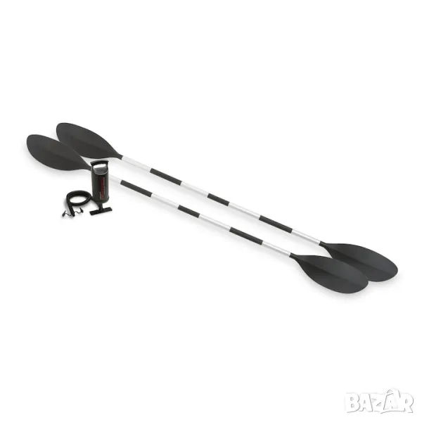 Размерът му е 312 х 91 х 51 см, а максималната товароносимост: 160 кг. Получавате го в комплект с 2 гребла и ръчна помпа.
