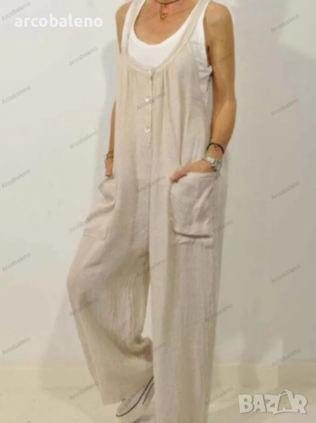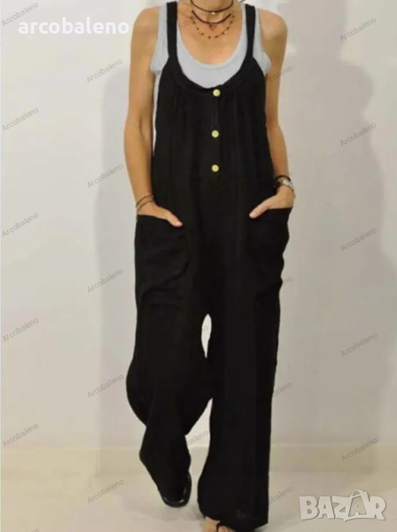 Едноцветен гащеризон с копчета от памучно-ленен плат е подходящ за много поводи, семплият дизайн прави скучния сезон цветен и интересен. Разнообразието от опции за колокация ви прави уверени и красиви. Прилепва плътно, без да ограничава движението ви.