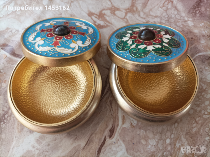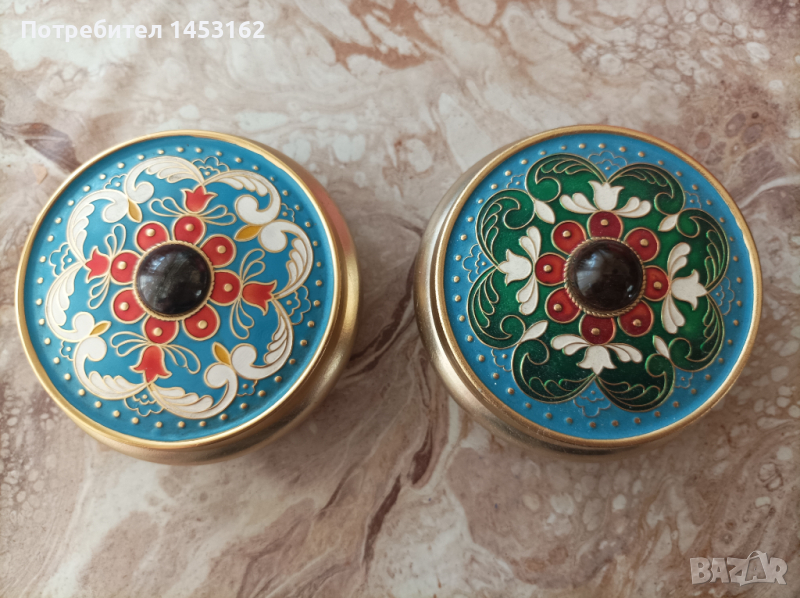 Красиви и редки пудриери от СССР.Произведени през 1970 г.със запазени части и красив емайл, цената е за брой,при закупуване на двете отстъпка от цената!