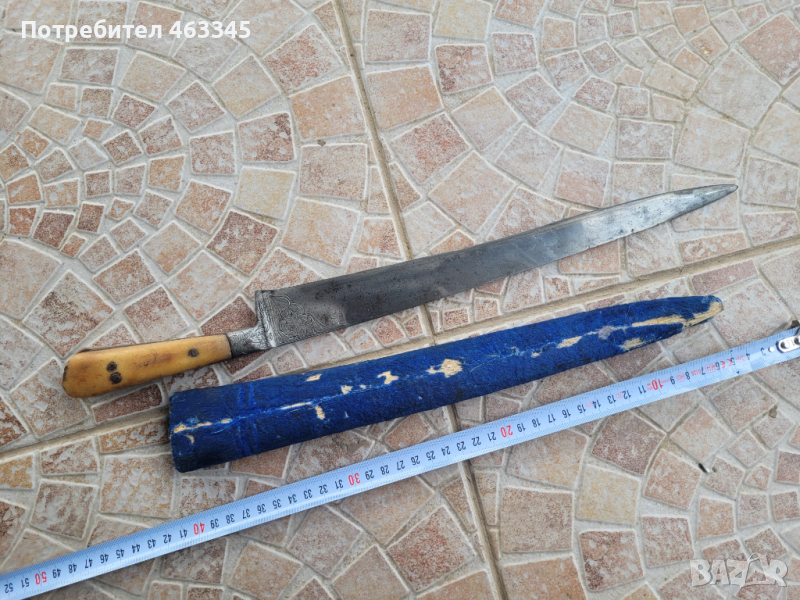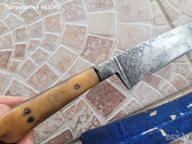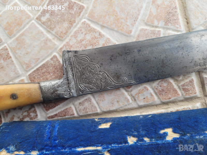 Изключителен моголски кард. От 18-ти век. Кокалена дръжка в сравнително добро състояние - макар костта да е неподхранвана. Дамасково острие украсено по дължината на опашката на клина и в основата на острието с приятни, арабески. Налична кания, която има яси следи от носене. Кардът е за носене в пояса или колана. Много рядка вещ!