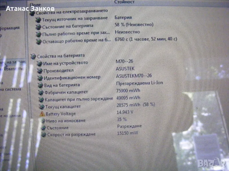 Работещ лаптоп за части Asus PRO72Q → Обява 44934623